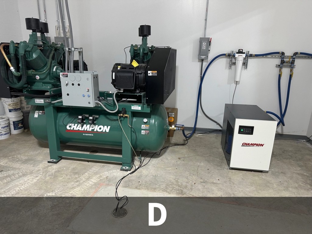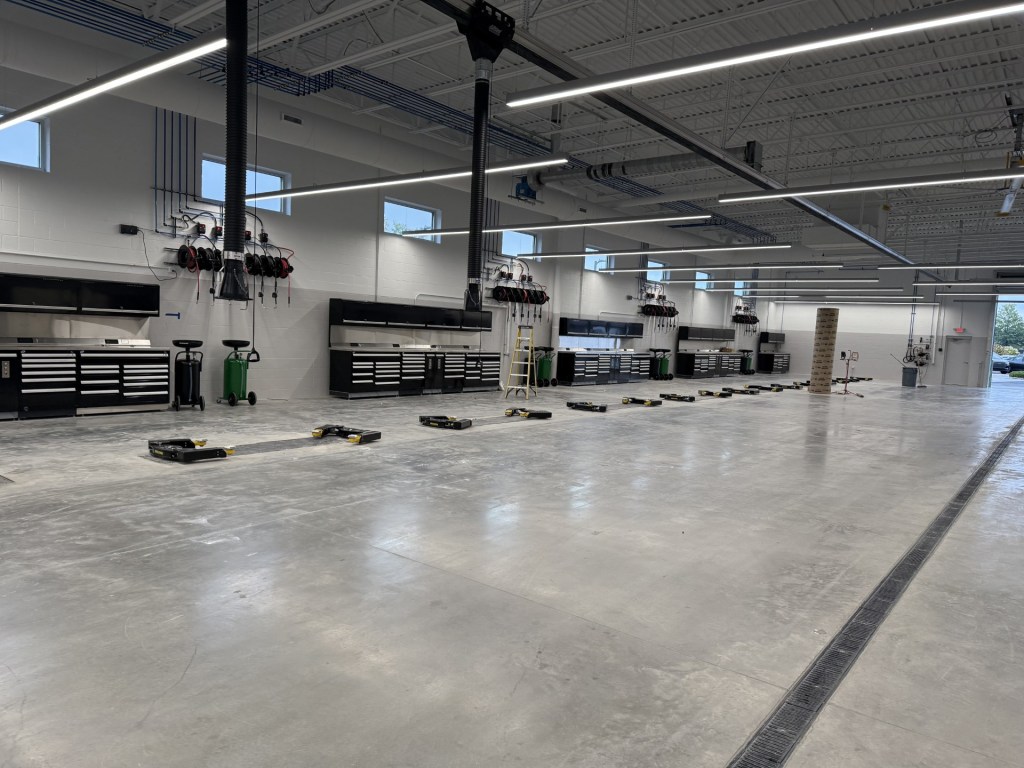 - D: Service Bays(Lifts, Lube & Air reels, Workstations, Overhead Exhaust System)